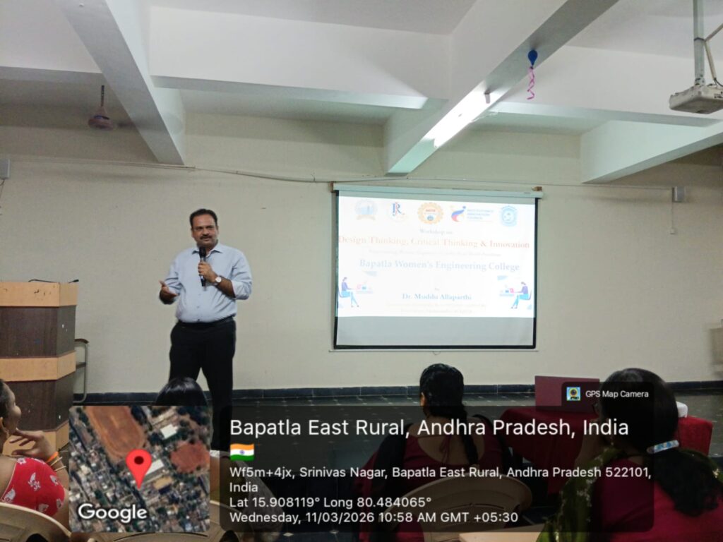 Bapatla, 11-03-2026: The Department of Computer Science and Engineering at Bapatla Women’s Engineering College organized a one-day seminar on “Innovation, Design and Critical Thinking” on campus.